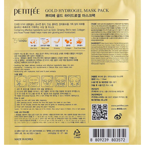 Золотая гидрогелевая маска придаст лицу гладкость и здоровое сияние. Золото – настоящий кладезь полезных веществ для красоты кожи. 24-каратное коллоидное золото оказывает омолаживающий эффект, ускоряет обменные процессы в эпидермисе, повышает упругость и эластичность кожи, разглаживает морщинки. Аденозин и коллаген являются универсальными антивозрастными компонентами, разглаживающими морщины.