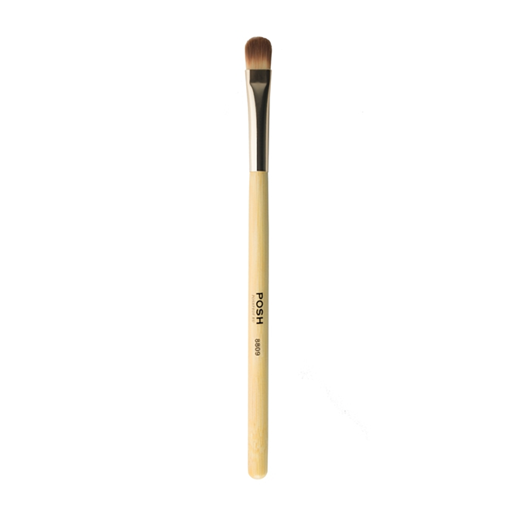 Профессиональная кисть для нанесения, растушёвки консилера и создания эффекта «Точеный носик» со стильной ручкой из эко-бамбука, ворс – таклон, синтетическое волокно, по свойствам максимально приближенное к натуральному волосу. Кисти из таклона не только не уступают по своих характеристикам натуральным кистям, но и превосходят их. Прекрасная, плотно набранная,при этом очень нежная плоская кисть, используется для нанесения консилера, не оставляет разводов и позволяет варьировать плотность нанесения. Максимально вбирает и отдает продукт, не тянет нежную кожу под глазами. Идеальна для создания эффекта «Точеный носик». Кисти можно мыть каждый день, предварительно смочив немного кончики ворса средством для снятия макияжа POSH, остатки косметики смываются за секунды, быстро сохнет.