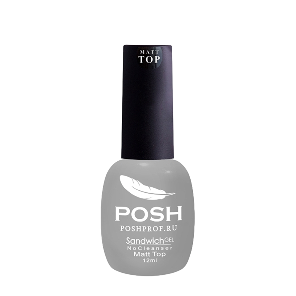 SANDWICH GEL POSH Matt Top – это матовое топовое покрытие. Сверхпрочное верхнее покрытие системы Сендвич, имеет очень плотную структуру, что придает прочность всей конструкции покрытия и защищает ее от механических повреждений. Верхнее покрытие имеет интенсивную матовую поверхность и не оставляет липкого слоя после нанесения. Технология Сендвич разработана в Швейцарии и служит для наилучшего распределения жесткости и упругости покрытия. Благодаря эластичной и воздухопроницаемой базе гелевое покрытие более гибкое и подвижное у ногтевой пластины, что позволяет максимально сохранить здоровье ваших ногтей и увеличить носку лака в экстремальных условиях.