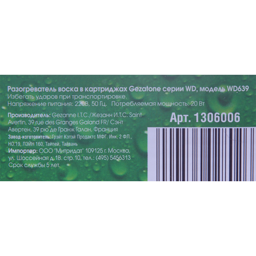 Разогреватель для картриджей воска WD639 специально разработан для удаления волос в домашних условиях, он имеет эргономичный дизайн, очень компактен и прост в применении. Его мобильность делает возможным его применение не только дома, но и в деловых поездках, и в путешествиях. Прибор для разогрева воска WD639 предназначен для использования с большинством представленных в России картриджей воска (объемом 100мл).